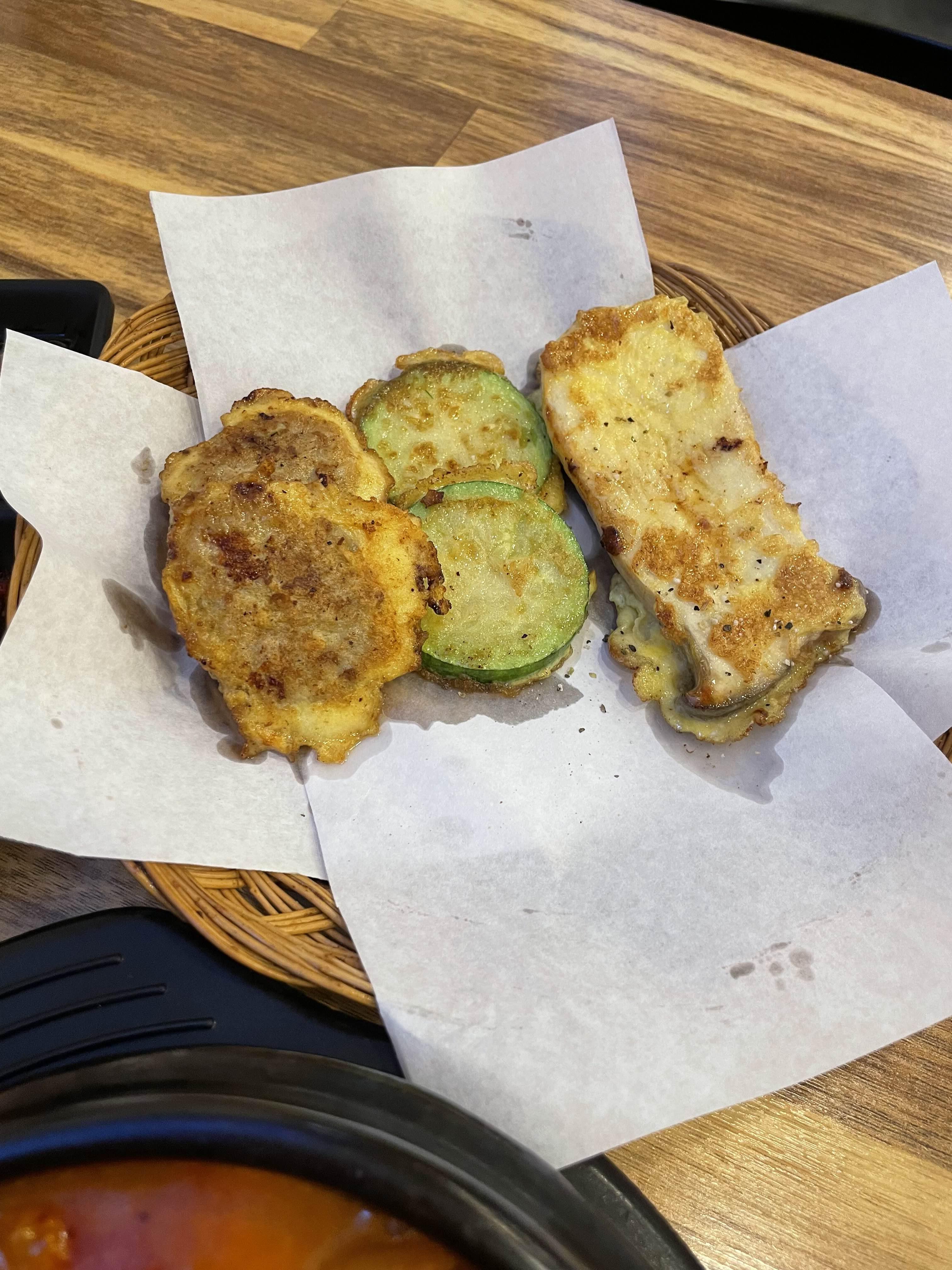 「海鮮(かいせん)チヂミ」:해물전(ヘムルジョン)